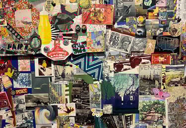 I love color! That's where most of my creations start, but I also just have to do it a little differently, and most of the time add some humor. I don't like to limit my creativity and use whatever medium or style I feel works. Vintage collage, painting, drawing, sculpture, digital or photography, I use them all.