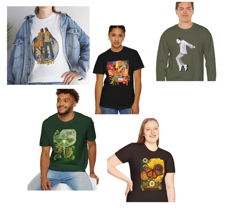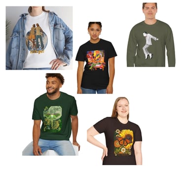 My best artwork available on a huge variety of shirts, hoodies, sweatshirts and more at Printify. Your chose your color, size and even add personal text to make it your way and they print it for you. You will also see some of my art printed on canvas here in various sizes.